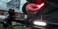 Notre système se compose d'un feu avant et d'un feu arrière qui disparaissent dans un étui pratique une fois le trajet terminé. Pas de supports encombrants, pas de manipulations compliquées : il suffit de l'emballer et c'est tout.