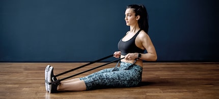 Fixez la bande à une poignée de porte ou au pied d'un lit. Jambes pliées, les bras forment un angle à 90 °. Tirez la bande vers les pieds en gardant la tête droite et en regardant devant. Répétez l'exercice 20 – 25 fois. Aussi possible avec bandes TRX.