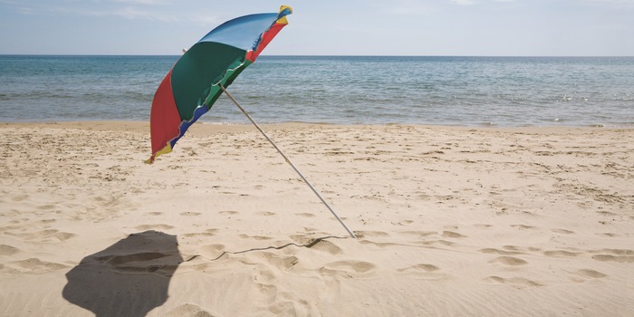 Pour tous ceux qui vont souvent à la mer, je conseille de laisser un petit parasol ou une tente de plage dans le coffre de la voiture. Une casquette protège contre l’insolation et les lunettes de soleil retardent les pattes d’oie au bord des yeux… voilà d’excellentes raisons!
