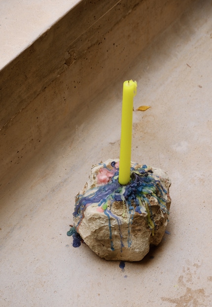 Il y a quelques semaines, j'ai voyagé au Mexique pendant un mois et j'ai vu à plusieurs reprises dans divers hôtels, restaurants et magasins que les bougies s'y égouttaient simplement. Ma première pensée a été : ça va être compliqué d'enlever la cire. Ma deuxième réaction : et si ce n'était pas le cas ? Les nombreuses couches de cire indiquaient que l'écoulement libre était même voulu ici. Par hasard, j'ai vu que les bougies à tige étaient remplacées dans l'un des hôtels. Le membre du personnel a choisi une couleur différente de celle utilisée précédemment. Conscient ou non, le résultat était impressionnant. Les traces de cire multicolores, aux couleurs de l'arc-en-ciel, transformaient les simples bougeoirs en pierre en véritables accroche-regards.