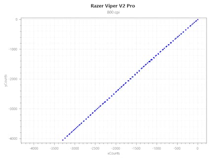 Si vous déplacez la souris en ligne droite, elle doit enregistrer le mouvement et ne pas faire d'écart. Je déplace la Viper V2 le plus droit possible en diagonale et enregistre le mouvement avec MouseTester. Le mouvement enregistré devrait suivre mon mouvement en diagonale.