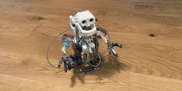 S'il rencontre un obstacle, il le contourne – en fonction de la distance – en tournant vers à la droite ou la gauche. Il peut également ouvrir et fermer la bouche. Il émet aussi de petits sifflements, ils proviennent cependant du téléphone sur lequel j'utilise l'application. Ce modèle se déplace de manière bien moins saccadée que le coléoptère. Cependant, le droïde est extrêmement bruyant et il lui arrive de tomber. Je préfère l'idée et le design du modèle droïde à celui du coléoptère. Le tout est astucieusement réalisé, mis en œuvre avec relativement peu de pièces et se déroule relativement bien.