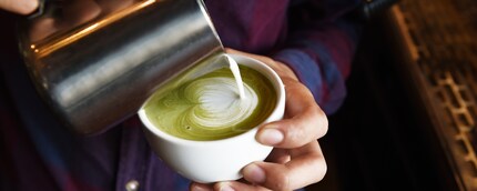 Mettez une cuillère à thé de matcha dans une tasse, versez de l’eau chaude à 80°C maximum et remuez comme il faut. Veillez à ce qu’aucun grumeau ne se forme. Réchauffez la quantité de lait désirée, faites-la mousser et versez-la sur le thé, ou mélangez le tout. La mousse de lait donnera à votre latte au matcha le petit plus qui fait toute la différence. Ajoutez du sucre ou du miel si vous le souhaitez.