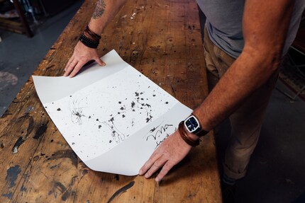 Il se souvient avec tendresse d'Harald Nägeli, le « Sprayer de Zurich » dont l'enseigne en néon rose, qui trône au-dessus de l'entrée du Schiffbau, a été offerte en cadeau à la nouvelle direction de ce théâtre zurichois. « J'ai reçu un dessin signé de lui », dit-il d'une voix enthousiaste en sortant immédiatement l'œuvre enroulée.