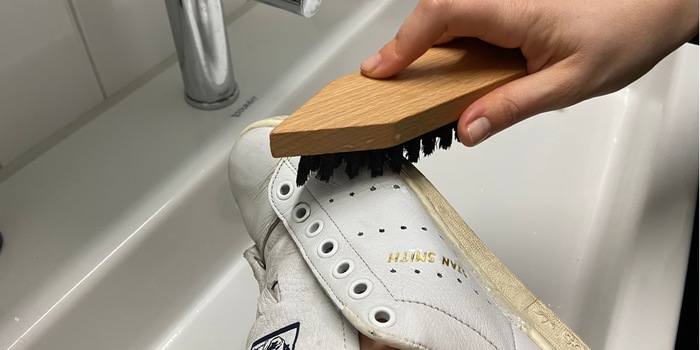 Pour les petites taches entre deux, je vous conseille les chiffons de nettoyage spéciaux ou des gommes antisalissures produits utilisables sur des semelles en caoutchouc, lesquelles ont tendance à jaunir. Les coupables ? La saleté certes, mais les UV aussi. Quelle que soit la tache, ne jamais utiliser de produits agressifs et dégraissants. Le cuir, en particulier, a besoin d'agents hydratants pour rester souple et brillant. Et pour le blanc de la semelle, utilisez plutôt des produits de nettoyage spécialement conçus !