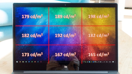 On obtient une moyenne de 180 cd/m², ce qui est plutôt mauvais. Et puis, la luminosité diminue légèrement en bas à droite. Je ne le remarque cependant pas à l'oeil nu, que ce soit quand je travaille ou quand je regarde des films. Je trouve les couleurs vives. On peut très bien utiliser le notebook pour regarder un film dans une pièce sombre. La représentation des couleurs n'est toutefois pas assez bonne pour les professionnels. Quant à la couverture de l'espace colorimétrique, je ne mesure que 79,1 % pour le sRGB, 57,8 % pour l'Adobe RGB et 64,5 % pour le DCI P3. Il n'y a en revanche rien à redire en ce qui concerne la stabilité de l'angle de vue. Le contraste statique de l'écran est de 703:1, le contraste dynamique de 2054:1.