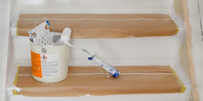 Ce travail de protection avec du ruban doit être fait correctement pour éviter de se retrouver avec un escalier tout taché.