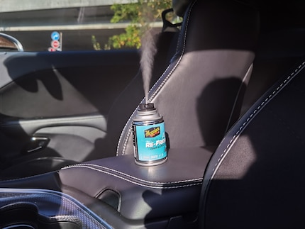 Voici le grand problème : Meguiar's ment. Selon le fabricant, après une demi-heure tout devrait être terminé et la Hellcat devrait sentir bon la voiture neuve.