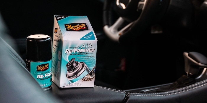 « Toutes les odeurs désagréables, comme la fumée de cigarette, les émanations d'animaux et de sueur ou l'odeur des restes alimentaires, sont complètement neutralisées. Il ne reste plus qu'une agréable odeur de fraîcheur », explique Meguiar's Suisse sur son site Internet. Le destructeur d'odeurs est disponible dans trois parfums : citron vert, brise d'été (aucune idée de ce que c'est) et « véhicule neuf ». J'ai opté pour le parfum « véhicule neuf », parce qu'il n'existe rien de mieux que l'odeur d'une voiture neuve.