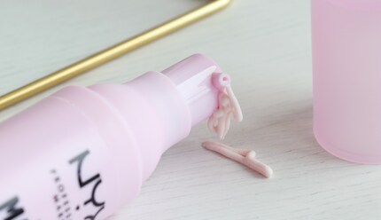 Les primers, ou bases, ne sont pas essentiels selon moi. Cela dit, il n'est pas rare qu'un produit en particulier me pousse à ajouter une étape supplémentaire à ma routine de maquillage. « The Marsh Mellow Primer » de NYX est un de ces produits. La base sans silicone est légèrement parfumée, contient de l'extrait de racine de guimauve (marshmallow en anglais) et procure un toucher lisse et doux à la peau, permettant ensuite d'appliquer facilement le fond de teint. Selon le fabricant, la base prolonge la tenue du maquillage jusqu'à 16 heures. Je n'irais pas aussi loin, mais j'ai pu constater une tenue jusqu'à deux, trois heures de plus que sans le primer.