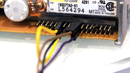 Je veux tout de suite essayer de voir si cela fonctionne. Mais avant de pouvoir le faire, je dois encore alimenter le lecteur de disquettes. Pour que mon bloc d'alimentation soit en mesure de le faire, je dois le ponter. La meilleure façon de le faire est d'utiliser sowas. Je l'ai fait différemment, mais ma méthode est déconseillée, c'est pourquoi je ne te dis pas comment j'ai fait.