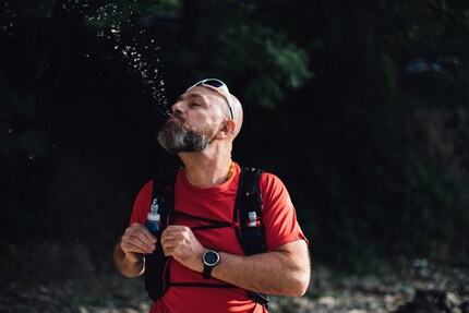 Dans la course à pied, l'absorption de nourriture est fortement limitée par les chocs constants et la sollicitation de tous les systèmes. Le garde-fou pour boire est de 0,4 à 0,8 litre par heure lorsque les températures sont modérées. Plus il fait chaud, plus le besoin individuel en liquide est élevé.