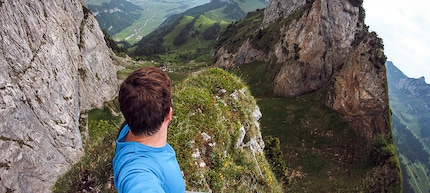 Au sommet, une vue panoramique vertigineuse s'offre à nous. Malheureusement, le temps est un peu maussade aujourd'hui. Normalement, au lieu de la brume à l'horizon, on voit jusqu'au lac de Constance.