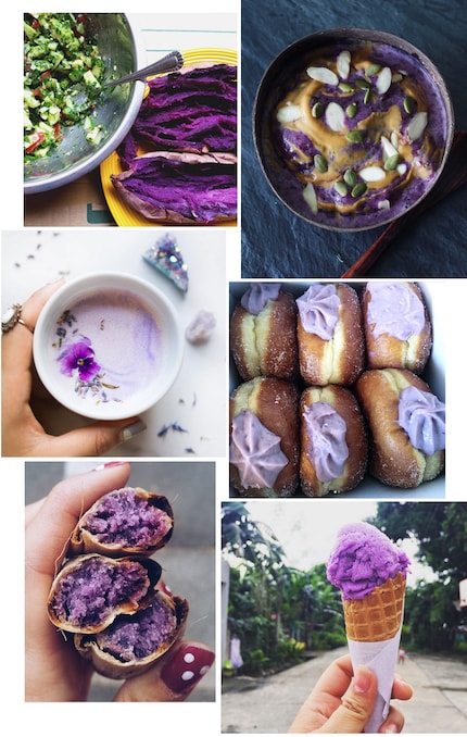 Actuellement, le violet vif est présent sur de nombreux blogs de cuisine et sur Instagram. Cette couleur intense qui paraît presque artificielle vient d’une sorte de patate douce appelée ube.