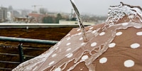 Autre inconvénient : le diamètre de 90 centimètres du parapluie ne suffit pas à me protéger sur les côtés et dans le dos. À Hambourg, la pluie vient de tous les côtés à cause du vent et je finis inévitablement partiellement trempée.