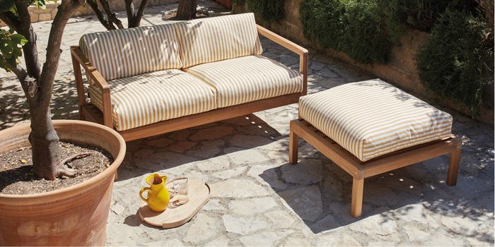 Deux éléments individuels suffisent à former un canapé ou une chaise longue. Par exemple, en posant un coussin sur une table d'appoint que l'on prendra soin de placer devant l'assise, on obtiendra une chaise longue. Dans la plupart des collections comme « Virkelyst » de Skagerak, on trouvera une table assortie aux sièges. On peut tout aussi bien procéder de façon inverse, en utilisant un tabouret en guise de table sur lequel on dispose un plateau.