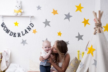De belles idées comme des filets à grimper, des murs à peindre, des grottes suspendues ou des repères de hauteur en film plastique sur l'armoire pour mesurer la taille, créent de l'excitation et de la joie dans la chambre d'enfant. Soyez créatifs et faites plaisir à vos petits en décorant leur chambre, car rien n'est plus beau qu'un sourire d'enfant heureux et satisfait.