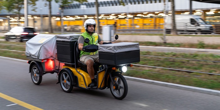 Une charge de batterie permet de parcourir 40 à 50 kilomètres, ce qui est suffisant pour livrer tous les produits avant 22 heures. Mais ce n’est pas toujours le cas. « Ce sont surtout les influences extérieures qui rendent la livraison imprévisible de temps en temps », explique Kagan Hibbert, responsable de la plateforme de notime à Müllingen.