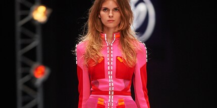 Les matériaux sportifs combinés à des tissus élégants créent des effets de surprise. Des influences des années 70, des imprimés voyants et des éléments de différentes disciplines sportives caractérisent cette tendance.
