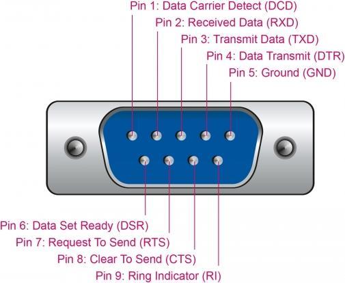 Signaux : TxD, RxD, RTS, CTS, DTR, DSR, DCD, RI, GND.