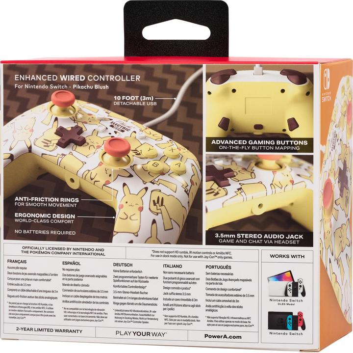 Le contrôleur filaire amélioré PowerA, officiellement licencié par Nintendo pour la Nintendo Switch, allie beauté et performance. Chaque contrôleur présente un design haut de gamme et des fonctionnalités de jeu fantastiques. Programmez deux boutons de jeu avancés assignables en un rien de temps, branchez votre casque pour un son stéréo et profitez d'un contrôle fluide des joysticks grâce aux anneaux anti-friction intégrés. Prenez de l'avance sur la concurrence avec les boutons de jeu avancés assignables que vous pouvez programmer pendant le jeu, sans avoir à configurer les paramètres système. Jouez pendant des heures avec un contrôleur qui, grâce à une ergonomie de pointe et des matériaux de haute qualité, tient bien en main. Un câble USB de 3 m est inclus, et PowerA offre une garantie de 2 ans sur tous ses produits pour souligner son engagement envers la qualité. Prise audio 3,5 mm. Boutons de jeu avancés mappables. Pas de piles nécessaires. Officiellement licencié par Nintendo. À utiliser uniquement lorsque la Switch est dockée. Ne prend pas en charge le HD Rumble, l'IR, le contrôle de mouvement ou Amiibo NFC. Non compatible avec les jeux uniquement Joy-Con.