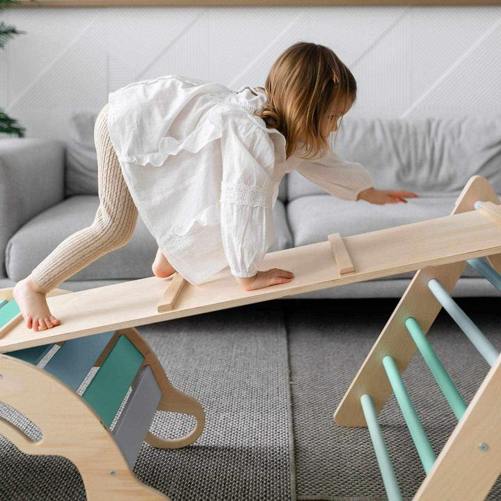 Nous veillons à la sécurité, toutes les arêtes sont arrondies et les barres sont fixées de manière à ne pas tourner. Le triangle est également équipé d'un dispositif de verrouillage pour éviter le pliage.