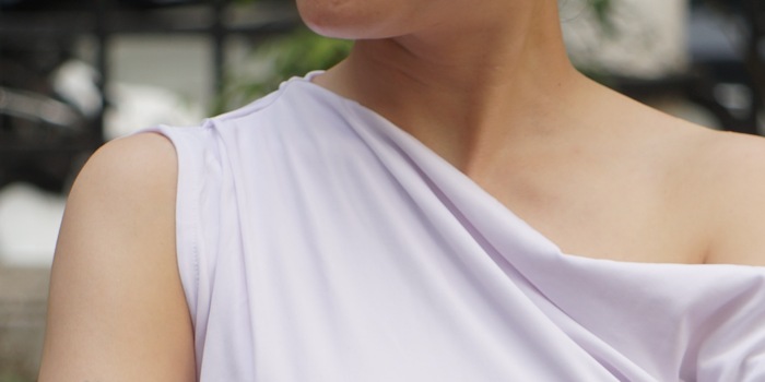 L'asimmetria porta imprevedibilità e originalità, crea una tensione che attira l'attenzione. Esistono numerosi modi per rompere la solita simmetria in un top. Una variante molto classica è il top monospalla, in cui una spalla è completamente scoperta. Altri scolli asimmetrici o dettagli come gli orli diagonali aggiungono un effetto sorpresa ai top basic.