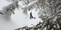 Ci alziamo con il sole che, per una volta, fa breccia tra le nuvole. La schiena e le ginocchia sono ancora doloranti per le ore di scivolamento del giorno prima, ma decidiamo comunque di fare un'escursione nella foresta sul lato opposto della valle. Il sentiero è molto ripido, ma senza i nostri pulka e senza la pioggia, la salita è facile per noi.