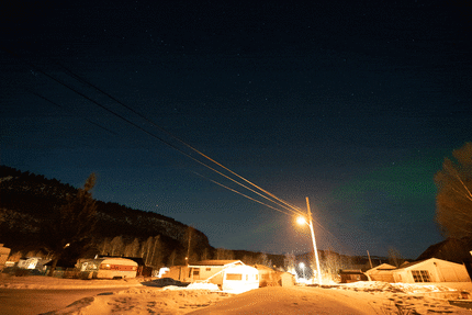 Neanche un minuto dopo che i nostri smartphone ci hanno svegliato, eravamo fuori nella neve accanto alle nostre macchine fotografiche, ancora in pigiama. Cambiamo frettolosamente le batterie, che si sono scaricate durante la notte, e ci affrettiamo a rivedere le registrazioni degli intervalli. E di sicuro una delle telecamere ha ripreso le luci verdi a intervalli regolari! Siamo un po' dispiaciuti di non aver posizionato le telecamere più lontano dal campeggio per paura di perderle, ma almeno abbiamo fatto qualche foto dell'aurora boreale!
