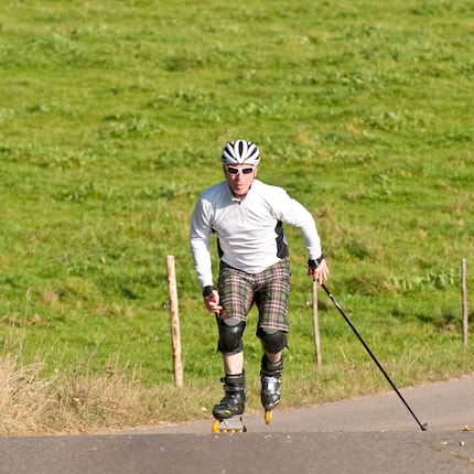 Lo sci a rotelle è ancora l'opzione di allenamento più popolare per gli sciatori di fondo appassionati e anche quella che più si avvicina alle sequenze di movimento utilizzate nello sci di fondo. Tuttavia, lo sci a rotelle richiede un po' di pratica.