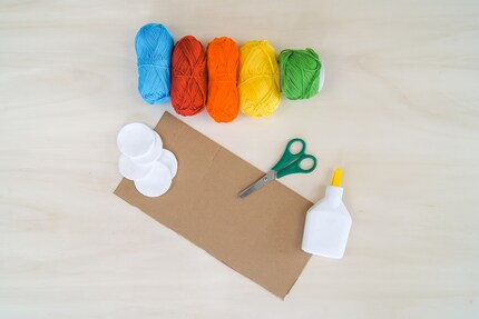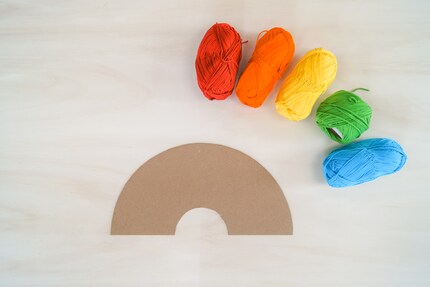 Visualizza tuttiPer il tuo arcobaleno avrai bisogno di un cartone, filati nei colori dell'arcobaleno e assorbenti di cotone. Inoltre, colla, forbici e matita necessarie per il crafting.