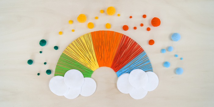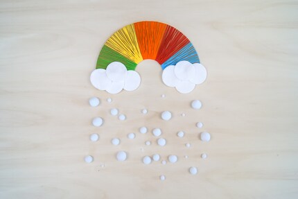 Nascondi alcuni batuffoli di cotone come nuvole sotto l'arcobaleno per arrotondare le due estremità.