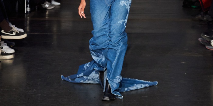 L'apice della stravaganza extra-long è stato mostrato da Sofie Axters, laureata alla Royal Danish Academy, alla settimana della moda di Copenhagen. Le gambe dei suoi jeans sbiancati ad arte si dividono sopra le caviglie e scorrono dietro a chi li indossa formando un vero e proprio strascico. Pratico? Decisamente no. Un'attrazione per gli occhi? Garantito.