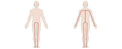 A sinistra: Misurazione con elettrodi del piede, a destra: misurazione con elettrodi del piede e della mano.Misurazione con due elettrodi da piede a piede