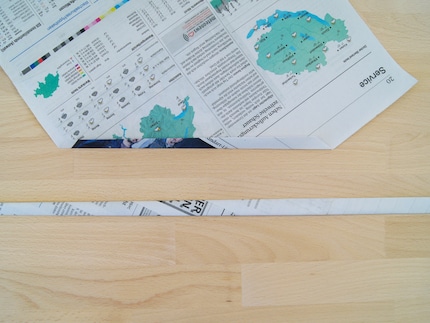 1. Taglia a metà una doppia pagina del giornale in modo da avere una singola pagina in mano. Partendo da un angolo, piegalo verso l'alto di circa un centimetro fino a quando non sarà tutto piegato. Infine, fissa la punta finale con un po' di colla.
