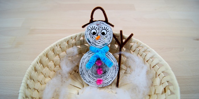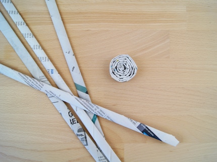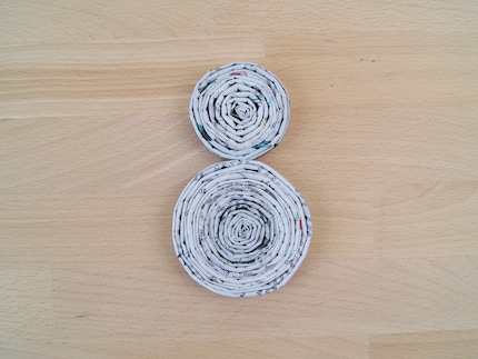 2. Per il pupazzo di neve, arrotola le strisce di giornale piatte in un cerchio. Puoi arrotolarle e dargli la forma che preferisci.