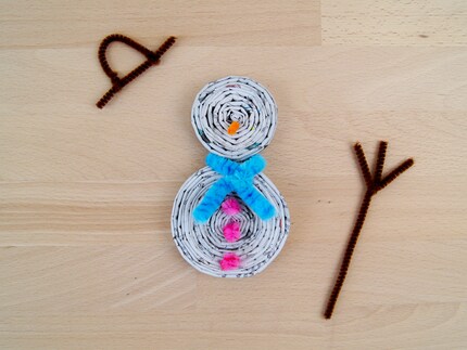 Visualizza tuttiUn vecchio giornale. Avrai anche bisogno di filo di ferro e occhi a mandorla o occhi adesivi. Con forbici e colla, sei pronto per il crafting invernale.