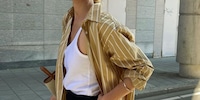 Cominciamo con l'opzione più semplice: basta indossare una maglietta oversize leggermente più lunga. In questo modo, oltre a coprire le tue zone intime, ottieni anche un look estivo casual e arioso. Naturalmente, l'insieme funziona anche con camicie, maglioni e giacche per le temperature più fresche. Per ottenere un bel look a strati, ti conviene combinare più elementi.