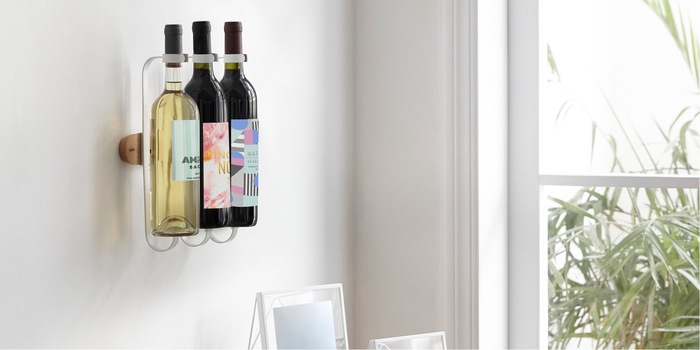 Meno pratici ma di grande effetto sono i portabottiglie che ricordano un oggetto d'arte. Visti dal davanti, questi modelli appaiono bidimensionali. Le bottiglie si integrano perfettamente nell’insieme. Appoggiali su una libreria o su una credenza per metterli in pieno risalto.
