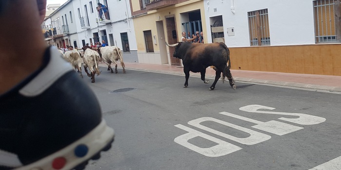 Arrivati in un piccolo paese, seguiamo buoni buoni la nostra rotta, fino a quando non ci troviamo davanti a una transenna in legno alta due metri. Ansiosi di arrivare a Valencia e con un po’ di Cava ancora nel sangue, Jonathan trova velocemente una soluzione: in qualche modo dobbiamo attraversare. Improvvisamente: gente che scorrazza su entrambi i lati, alcuni scavalcano la barriera e la strada continua alle spalle. Jonathan è determinato ad affrontare l'ostacolo prima che la gente del posto lo convinca a lasciar perdere. E giustamente. Perché poco tempo dopo la gente dall'altra parte salta oltre la barriera. La prossima volta sappiamo che frasi contenenti la parola «Torro» non sono necessariamente un invito a cena.