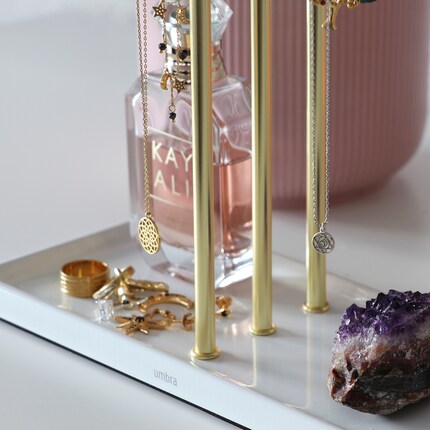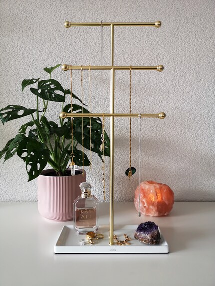 Non lasciarti intimidire dall'altezza (poco meno di mezzo metro). L'aspetto disadorno è quasi un po' troppo benevolo. Ma una volta posizionati i tuoi preferiti, il risultato è un quadro armonioso che non ti farà più dubitare delle proporzioni. Effetto collaterale positivo: da quando non ripongo più i miei gioielli in un cassetto ma li ho sempre davanti agli occhi, li indosso più spesso.