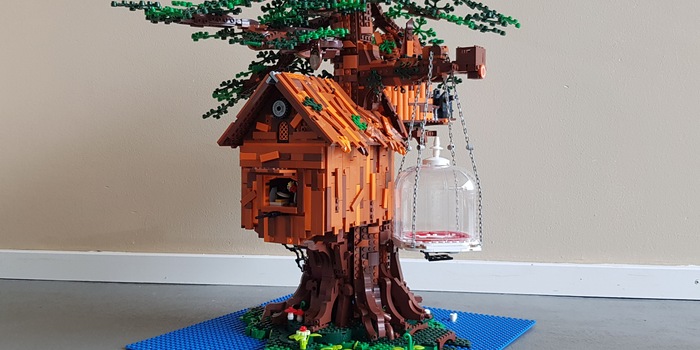 La costruzione della capanna sull'albero si rivela essere una sfida in quanto gran parte del lavoro è fatto sulla piattaforma che è posta sul tronco dell'albero. Poiché uso un po' troppa forza all'inizio, una gran parte della costruzione crolla. Di conseguenza, maneggio letteralmente il mio edificio con i guanti di velluto. E la cosa dell'efficienza si avvera davvero. Per esempio, quando ho svuotato i sacchi, ho subito classificato le parti identiche e simili. E così, dopo poco più di 24 ore, distribuite su diversi giorni, naturalmente, ho quasi finito. Mentre l'ultima parte sembra di nuovo più un lavoro che un piacere. Ci sono decine di foglie di plastica da attaccare in modo che il tutto sembri davvero una capanna sull'albero. Installo rapidamente la catena di luci in dotazione e il lavoro è finito. Non solo sono pieno di orgoglio e soddisfazione, ma il risultato piace molto anche ai miei figli: «Papà, voglio vivere in una casa sull'albero come quella».