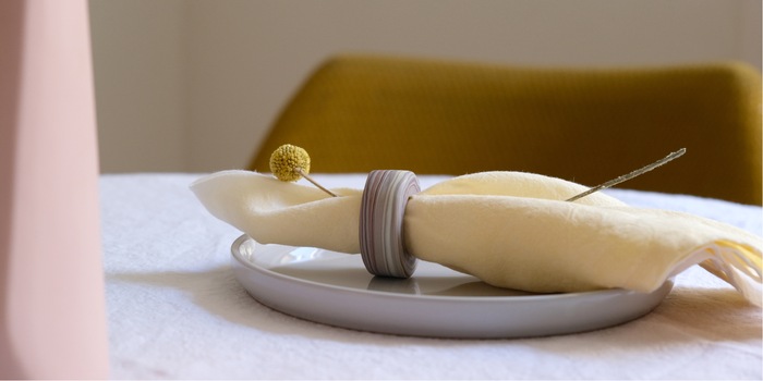 Si può ottenere un grande effetto sul tavolo anche con le piccole cose. Gli anelli per tovaglioli rendono più facile piegarli. Puoi crearli tu con un filo metallico o acquistarli.