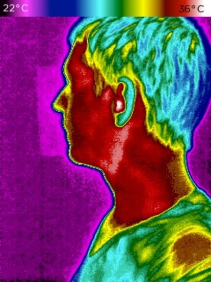 Posso catturare la mia mano o i miei piedi più facilmente. Le parti del corpo sono generalmente interessanti nella termografia perché sono più calde dell'ambiente circostante. Almeno in spazi interni ragionevolmente freschi.