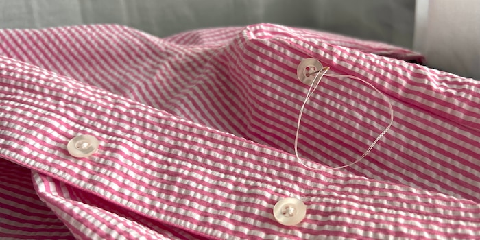 Ora non resta che cucire il bottone, il che richiede non più di cinque minuti. Non l'hai mai fatto? Niente paura. È incredibilmente facile e su Internet trovi numerosi tutorial come per esempio questo di appena due minuti. Anche se sono alle prime armi con la cucitura dei bottoni, ho aggiunto senza fatica un bottone in più a due delle mie camicette, e probabilmente non saranno le ultime.