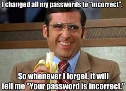 Questo adagio si applica anche alle password. Al massimo, Cristiano Ronaldo usa una password come "calcio" dopo essersi esercitato in troppi colpi di testa in allenamento. Potrebbe anche essere stato colpito nelle parti molli, ma non è detto. [[image:11026657]]