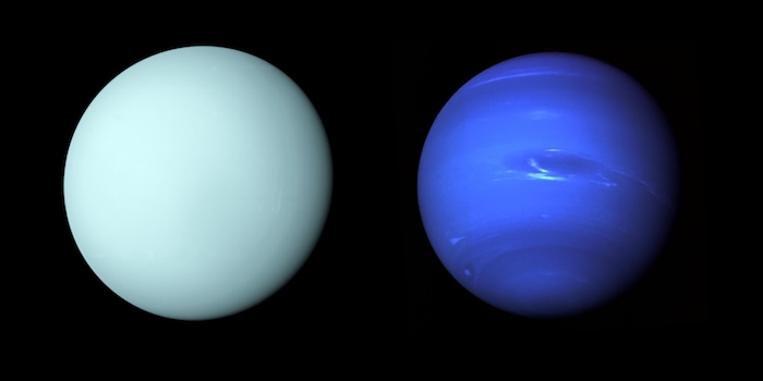 Lontano, ai confini del sistema solare, orbitano due pianeti blu: i giganti di ghiaccio Urano e Nettuno. Mentre Urano, che è più vicino al sole, è noto per il suo colore turchese, Nettuno brilla di un profondo blu marino nelle immagini. Ma la differenza di colore tra i due è un'illusione, come ha scoperto un gruppo di ricerca guidato dallo scienziato planetario Patrick Irwin dell'Università di Oxford. Come riporta il team nella rivista "Monthly Notices of the Royal Astronomical Society", i diversi colori dei due pianeti sono solo il risultato di una successiva elaborazione delle immagini. Infatti, entrambi i pianeti hanno quasi lo stesso colore: il verde-blu tenue che in precedenza era associato solo a Urano.