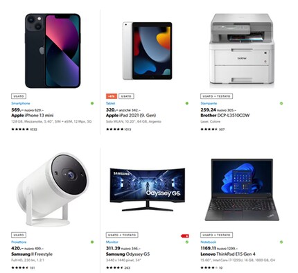 Il tuo prodotto apparirà quindi con la dicitura «Usato» nei negozi online. La dicitura «Usato + Testato», invece, indica i prodotti scontati di Digitec o Galaxus che la clientela ha ordinato, aperto e restituito.