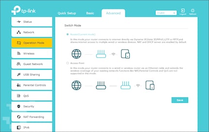 Se vuoi utilizzare il router come punto di accesso, puoi trovare l'impostazione corrispondente in "Modalità avanzata/operativa".