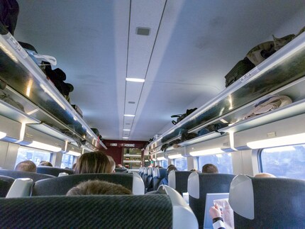 L'interno del treno è molto diverso da come me lo ero immaginato. Mentre i treni pendolari della S-Bahn di Zurigo sono angusti e scomodi, il TGV Lyria è davvero straordinario. Il treno SNCF (Service Nationale de Chemins de Fer) è progettato per i lunghi viaggi. La prima classe ha sedili ampi e offre una sorprendente quantità di spazio per le gambe. Questo rende sopportabile il viaggio di quattro ore da Zurigo a Parigi. Chi ha viaggiato sul treno prima di me deve aver dormito sul sedile e sbavato. Si possono ancora vedere i segni sul mio cuscino.